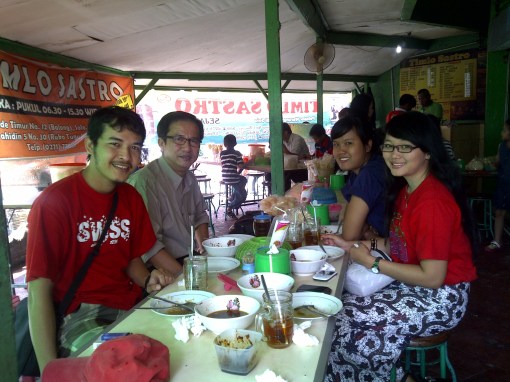 Tempat pertama yang kami kunjungi, karena hari sore menjelang malam, adalah kuliner Nasi Liwet “Wong Lemu” di Keprabon. Kami lesehan dan disuguhkan secara tradisional. Tempat ini menjadi favorit bagi “pendatang” yang baru ke Solo.